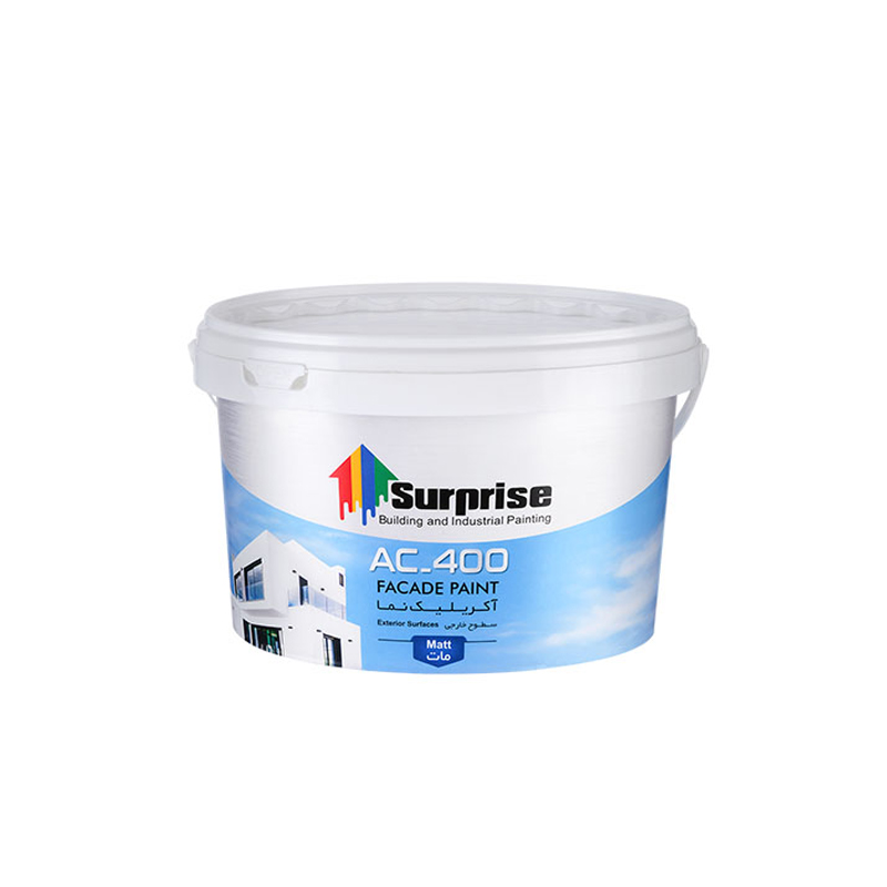 رنگ آکریلیک مخصوص نما سورپرایز (کد 400) SURPRISE در حجم های گالن، دبه و حلب موجود می باشد؛