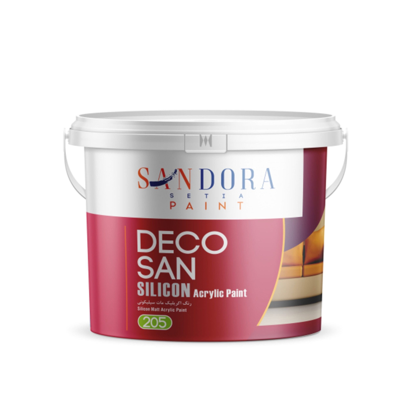 رنگ اکریلیک مات سیلیکونی دکوسان کد 205 ساندورا SANDORA در حجم های چهار و نیم، دوازده و بیست و دو کیلو می باشد؛